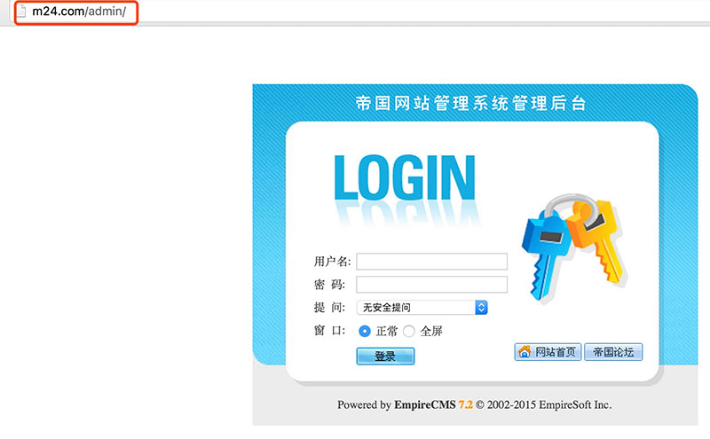 帝国CMS7.5版支持自定义后台登录文件,安全性更高