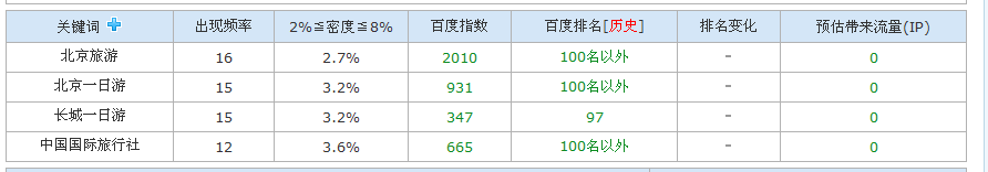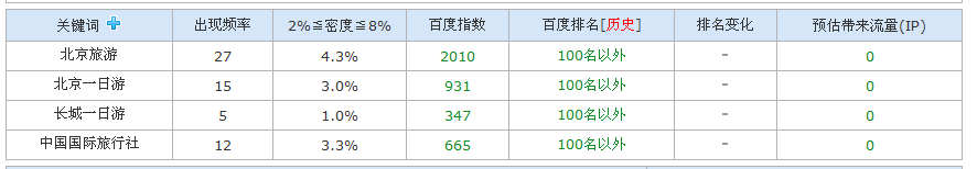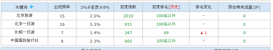 关键字选择的都是“北京旅游”,“北京一日游”,“长城一日游”。